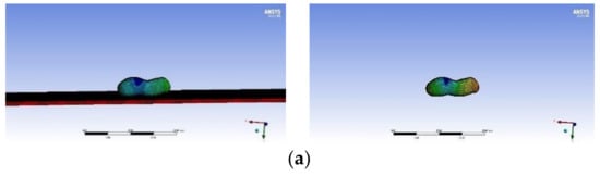 After the Hyper mesh meshes, the file is imported into the Workbench LS-Dyna module for a collision simulation. The simulated collision process is shown in Figure 9 This paper sets the material properties of the model in LS-Dyna. And import the models of peanut pods. And picking peanut roller blades into the software, respectively. To simulate the forces on peanut pods under impact loading, set the peanut picking rollers to three speeds: 400, 450, and 500 r/min. Add fixed restraints to the base of peanut pods. Also set to pick peanut pods for contact during working collisions. The contact section contains surface contact and self-contact of the individual components. The final simulation time is set to 10 ms, output contact forces, directional deformation, mass energy, etc.