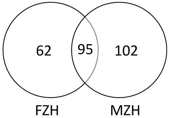 Venn diagram of metabolites found in the mycelia (MZH) and the fermentation broth (FZH) of Epichloë sinensis when cultivated in liquid culture.