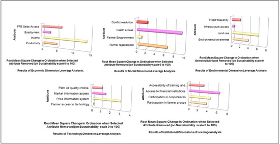 The calculation of the most sensitive attribute values of the five dimensions of palm oil sustainability is shown below (Figure 5):