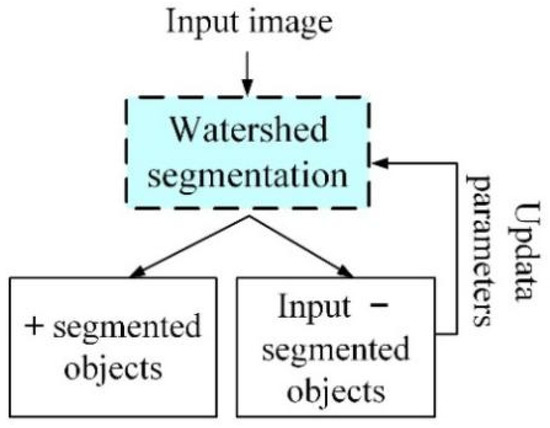 Due to superior segmentation performance, the MWS algorithm has been widely used in various fields, especially for the processing of medical images and remote sensing images [24,26,27]. However, if using the algorithm in our cereal image directly, there exists obvious over-segmentation or under-segmentation instances. In this paper, an improved MWS algorithm is proposed to overcome the two problems.