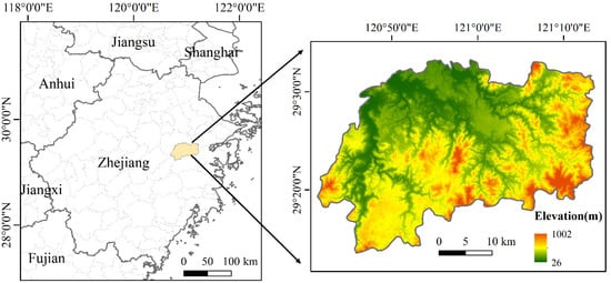 Overview of the study area in Xinchang, Zhejiang Province, China.