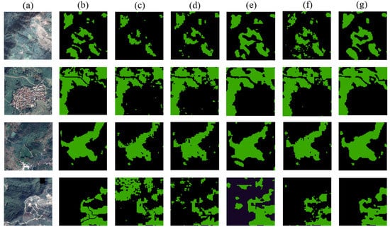 In the experiment, the models were trained and tested by five feature combination schemes on the datasets which have been described in the previous section. By taking the ground truth maps as references, the F1 score and IoU were calculated to evaluate the performance of the models trained by different input features. The higher their values are, the better the corresponding model performs. Table 4 illustrates the results of the above experiment.