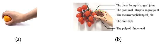 - Wang, J.N.; Li, B.X.; Li, Z.G.; Zubrycki, I.; Granosik, G. Grasping Behavior of the Human Hand during Tomato Picking. Comput. Electron. Agric. 2021, 180, 105901. [Google Scholar] [CrossRef]