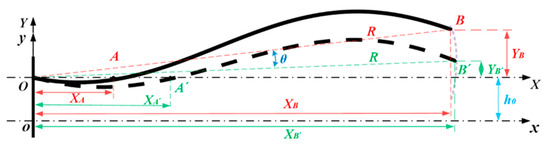 where is the homogeneous coordinate of Q in XOY; is the rotation matrix; is the translation matrix of the position of the XOY relative to XOY. After rotating clockwise, the equation for OB’ under XOY is: