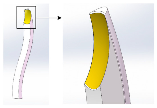 The human finger pulp has the biological characteristics of a thicker cuticle and subcutaneous fat pad. In grasping small fruits, the last finger pulps gradually form the concave geometric surface that are fitted to the fruit surface. Hand-picking realizes the grasping characteristics of large contact areas, strong envelopment, and flexible contact. Therefore, the finger ends were designed as the geometric surface close to the spherical surface of the cherry tomato. The parameters of the geometric surface are shown in Equation (7) (unit: mm). The model is shown in Figure 6. Its surface was covered with the 3 mm soft material called Dragon Skin 10 for flexible contact.
