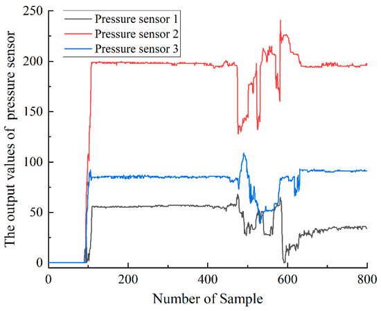 The pressure on the sensor’s surfaces changes as the gripper grasps and rotates the fruits. Its output signals will also vary according to working principle. Therefore, this experiment mainly collected the corresponding time signal changes of sensor outputs to explore the undamaged grab strategy in the picking process. The precise mathematical relationship between the grasping force and the output of the sensor’s electrical signal had not been established.