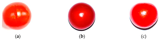 Examples of picking tomatoes: (a) Damaged fruit; (b) Browning fruit; (c) Wrinkling fruit.