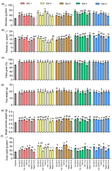 - Armin, M.; Akbari, S.; Mashhadi, S. Effect of time and concentration of nano-Fe foliar application on yield and yield components of wheat. Int. J. Biosci. 2014, 4, 69–75. [Google Scholar]