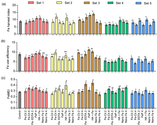 3.3. Influence of Foliar Fe Application on Fe Use Efficiency and Indices in Rice and Soybean