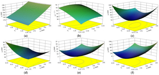 In order to analyze the influence of each factor on each response index, the response surface was obtained by using Design-Expert 8.0 software, as shown in Figure 4.
