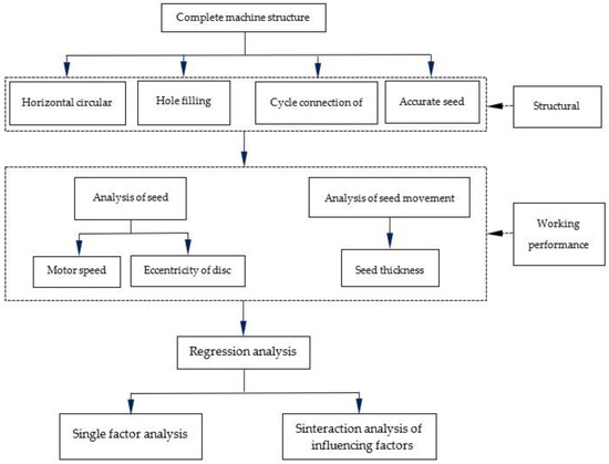 The structure of the whole machine is shown in Figure 2, which is mainly composed of the frame, motor, eccentric disc, connecting plate, support plate, seed filling box, upper plate, lower plate, seed guiding device, and tray.