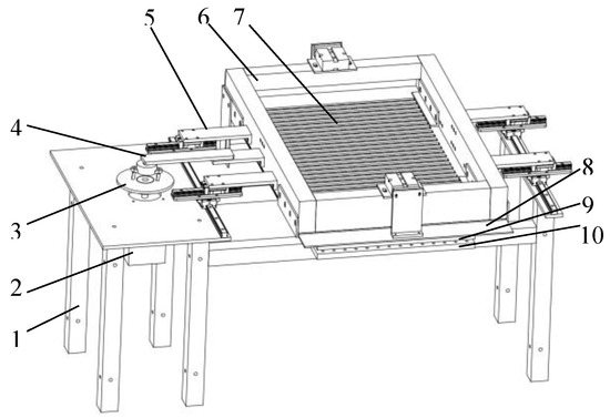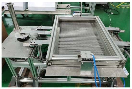 According to Formula (4), the value range of the key dimensions is obtained. From the perspective of ensuring the flatness of the upper and lower plates and reducing the cylinder stroke, and improving the stability, it is determined that the width of the fence hole is 14 mm, the width of the release hole is 4 mm, the stroke of the first cylinder is 9 mm, the stroke of the second cylinder is 3 mm, and the distance between the holes is 50 mm.