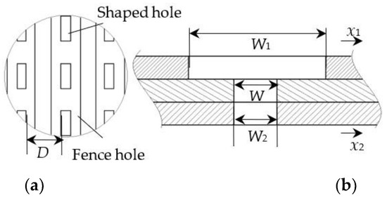where W1 is the width of the fence hole, mm; W2 is the width of the release hole, mm; D is the distance between the holes, mm; x1 is the stroke of the first cylinder, mm; x2 is the stroke of the second cylinder, mm.