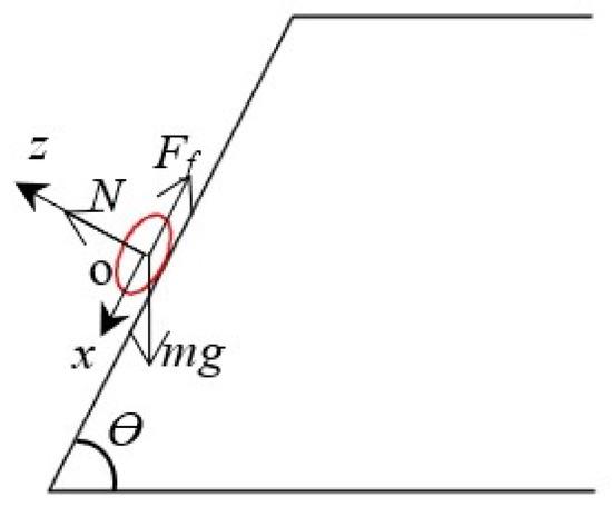 The slope of the seed guiding channel is designed to avoid seeds from staying still on the slope. Regardless of the bouncing and overturning phenomenon of the seeds on the inclined plane, when the seed centroid is taken to be the origin o of the coordinate system, the x-axis square is parallel to the inclined plane downward, and the z-axis square is perpendicular to the inclined plane upward. The force analysis of the seeds is shown in Figure 9 below.