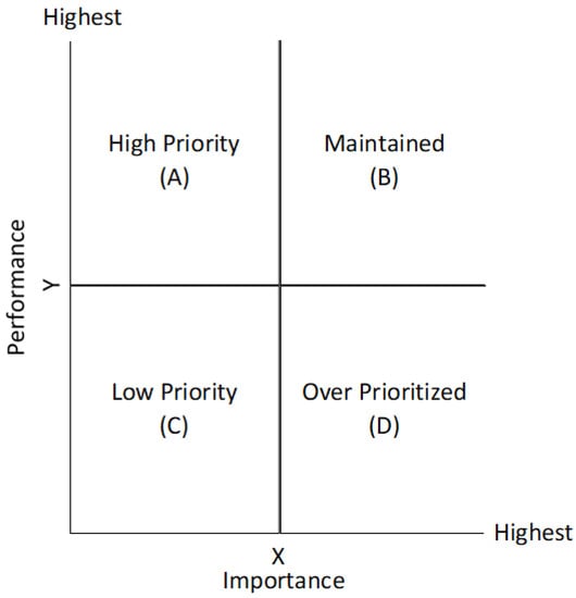 - Step 3: Assign each attribute to the Cartesian diagram (see Figure 2) for the interpretation of each quadrant [61] as follows: