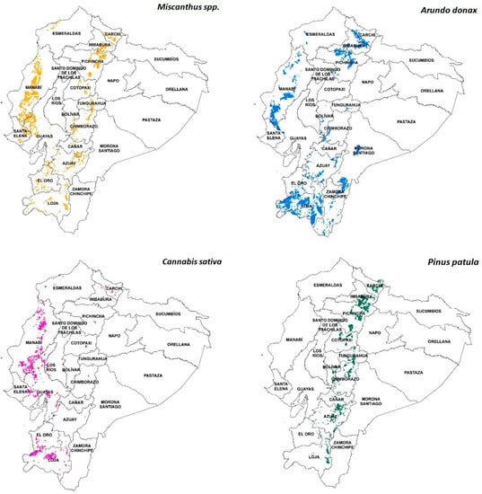 Considering the role of bioenergy in decarbonization scenarios in the country, according to [18], it is essential to explore the development potential of dedicated bioenergy feedstocks to secure a low-carbon baseload. Nevertheless, as prescribed by [9,56], bioenergy development should not compete with food production and natural ecosystems. Therefore, the main aim of this study is to quantify the energy potential of dedicated bioenergy crops in Ecuador. The specific objectives are (i) to identify dedicated bioenergy crops that could be produced in Ecuador, (ii) to identify available land with suitable agroecological conditions to produce dedicated bioenergy crops within a non-competitive scheme with food and natural ecosystems, and (ii) to quantify the gross bioenergy potential of the identified available land.