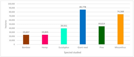 The selected crops which present a higher energy potential per hectare than the average in their group are: for woody crops: eucalyptus and pine and from non-woody crops: miscanthus, giant reed, hemp, and bamboo.