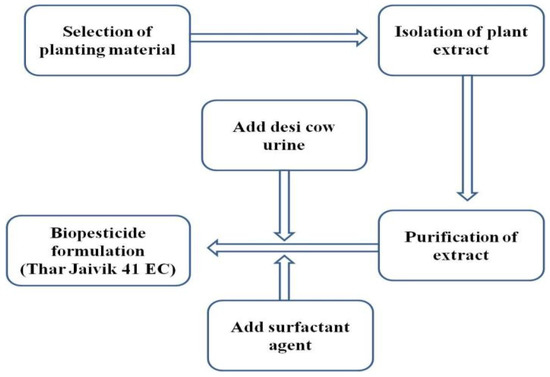 Diagrammatic depiction of the simplified flow chart for isolation and formulation of biopesticide “Thar Jaivik 41 EC”.