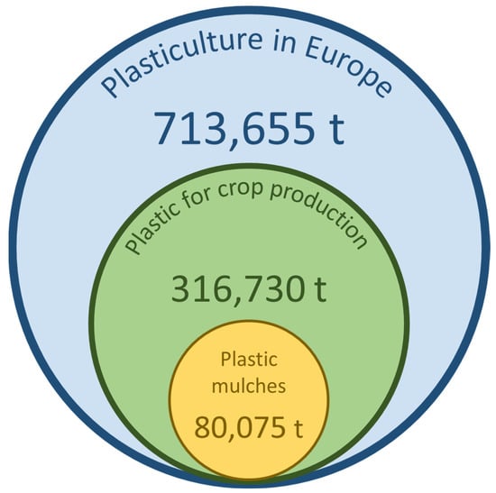 Venn diagram about plasticulture in Europe over the 2-year period 2018–2019. Data are expressed as tons of plastic sold. Source: APE Europe [20].