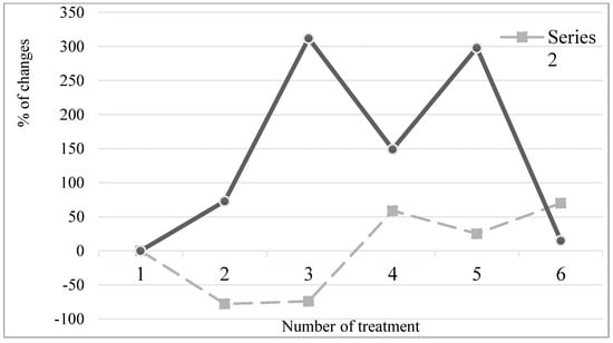 A problem with the agricultural use of sewage sludge may be the presence of inorganic and organic toxic components [8,10,45,46]. Of inorganic pollutants, the heavy metal content is particularly noteworthy since its excessive amount in the soil poses a potential risk to the environment [39,47]. The agricultural use of fly ash also raises a lot of controversy because of the potential hazard to the environment, mainly due to the migration of heavy metals [11,42]. However, the alkaline pH limits the mobility of these elements and may be an alternative to liming and sewage sludge hygienization. The total content of heavy metals copper (Cu), zinc (Zn), cadmium (Cd), nickel (Ni), lead (Pb), chrome (Cr), mercury (Hg) and iron (Fe) in the analyzed treatments, as compared to the limit values for uncontaminated soils, indicates their natural content [8,45] despite the application of sewage sludge and fly ash according to the experimental design (see Section 2.3). Simultaneously, their content shows quantitative variation depending on the variant of the experiment with significant relationships between treatments (Table 1). A significant increase in Fe, Zn and Cr in soils of Treatments 4, 5 and 6 was seen in relation to the control (Treatment No 1). Significant differences in Hg content were recorded across all treatments. However, the lowest Hg content was noted on plots enriched with fly ash only (Treatment No 6). There were no significant correlations between the amounts of Cu, Pb and Ni in the treatments.