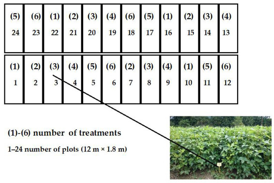 In the field experiment, the Lissabon soybean variety was used. It is characterized by a very high yielding potential and resistance to lodging and weed infestation in the Polish climate. The seeds were inoculated using HiStick® Soy (BASF Sp.z o.o., Warsaw, Poland), containing live bacteria of the Bradyrhizobium which cause a more efficient assimilation of nitrogen from the air in the soil in plants. HiStick® Soy contains at least 2 (2 × 109) billion live cells of Bradyrhizobium japonicum. To inoculate 100 kg of soybeans via dry inoculation before sowing, 400 g of HiStick® was used.