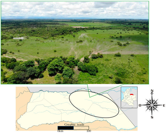- Pérez Bona, R.A.; Vargas Corzo, O.M. Características de la Sabana Nativa y su Potencial de Producción Bovina en la Llanura Inundable de Arauca; Boleín Técnico N° 25; Programa Regional de Investigación Pecuaria, Corpoica: Arauca, Colombia, 2001. [Google Scholar]