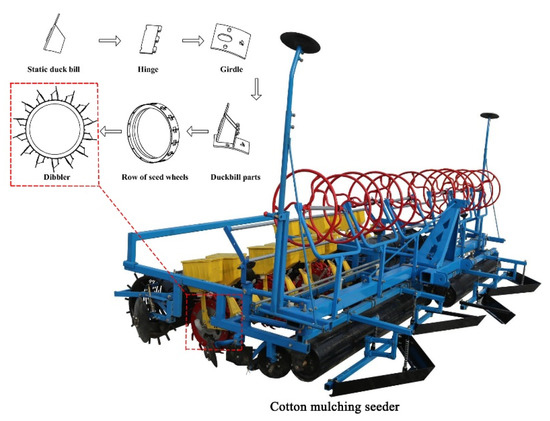 The plastic mulching technique is one of the most widely used and effective technical measures to improve soil water storage capacity and plant water use efficiency [1,2]. At present, cotton sowing in Xinjiang is based on the method of sowing on film, which is carried out on the soil covered with the film [3,4]. The duckbilled dibbler is used for sowing on film in Xinjiang. The duckbill of the dibbler will cut the film at the sowing position and form holes in the soil. The welding quality of the duckbill of the dibbler is the key to affecting the quality of the hole and the speed of operation [5].