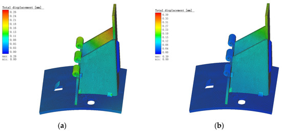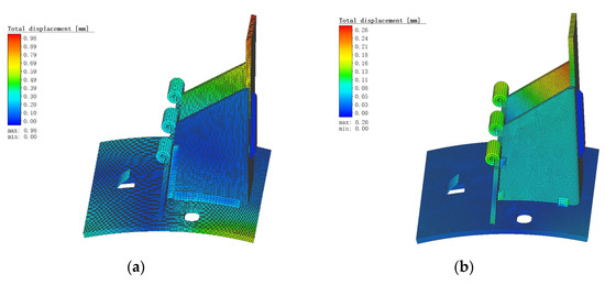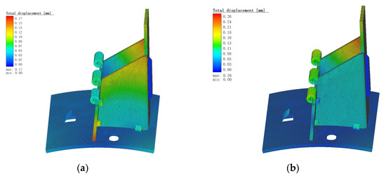 Total displacement diagram under continuous welding and spot welding conditions. (a) Continuous welding; (b) spot welding.