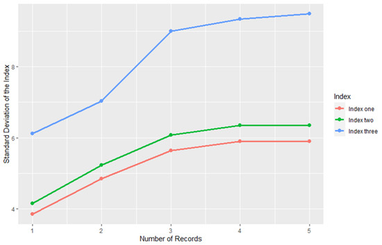 Effects of addition records on the standard deviation of the index. See Table 4 for a description of the index scenarios.