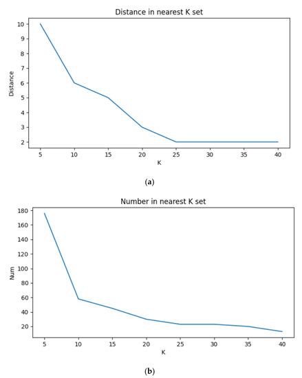 When the value of K increases, the number and distance decrease and converge, as shown in Figure 4.