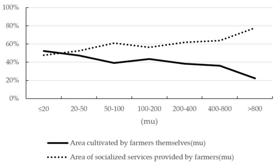 Proportion of farmers’ self-cultivation and socialized services area in the total operating area.