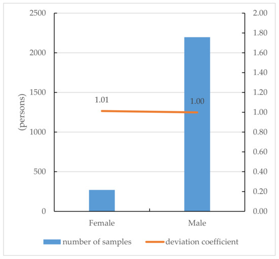 Deviation coefficient of agricultural machinery utilization rate grouped by gender.