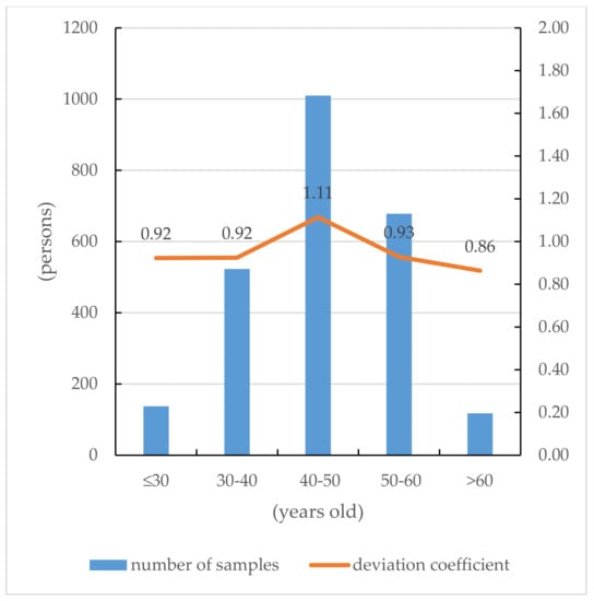 Deviation coefficient of agricultural machinery utilization rate grouped by age.