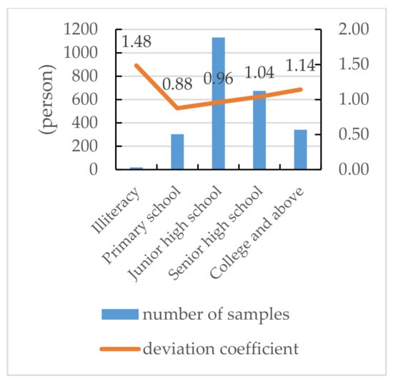 Deviation coefficient of agricultural machinery utilization rate grouped by education.