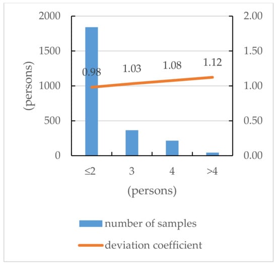 Deviation coefficient of agricultural machinery utilization rate grouped by number of family farming laborers.