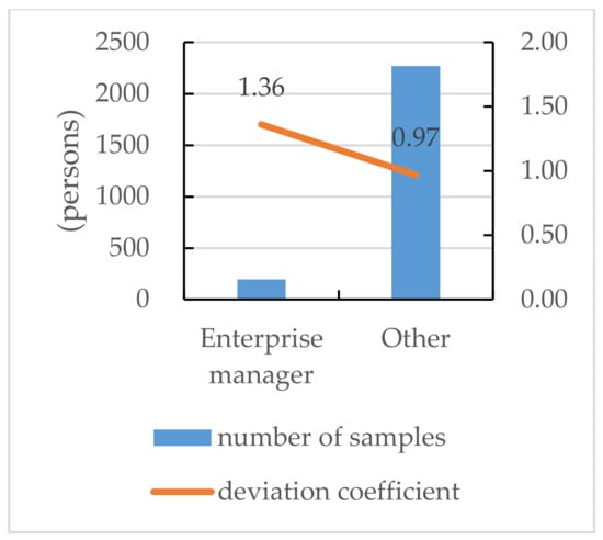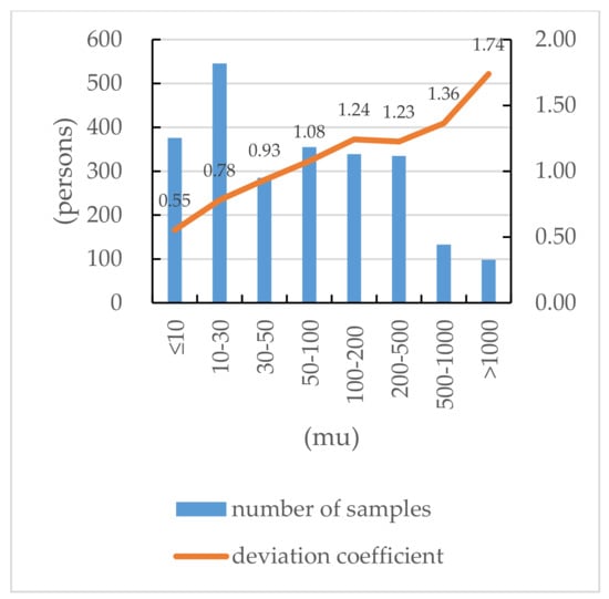 For a dataset, if the standard error is σ, the mean value is X, so 68.27% of the data is distributed in the X±σ range and 95% of the data is distributed in the X±1.98σ range. If σ = 0.1X (that is, the coefficient of variation is 0.1), then the data distributed between 0.8X and 1.2X (X±2σ) is greater than 95%. If data is outside this range, it deviates significantly from the mean value X. If σ = 0.3X (the coefficient of variation is large), then the data distributed between 0.8X and 1.2X (X±0.67σ) is still 49.72%, and the deviation degree between samples not in this range and the mean is large. Therefore, in order to quickly find possible significant differences, this paper uses an interval of 0.8–1.2 times before the formal econometric regression to preliminarily determine the significance of differences in the utilization rate of microtillers among samples in different groups.