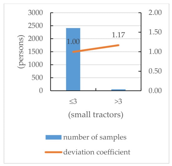Deviation coefficient of utilization rate of agricultural machinery grouped by the number of small tractors.