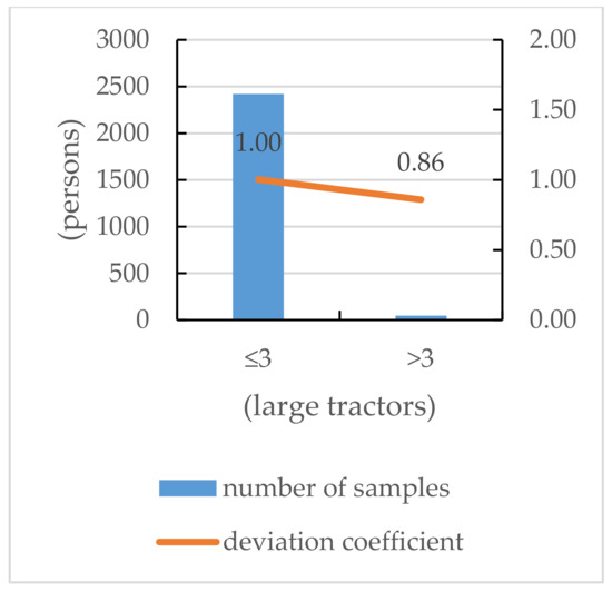 Deviation coefficient of utilization rate of agricultural machinery grouped by the number of large tractors.