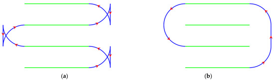 - Reeds, J.A.; Shepp, L.A. Optimal paths for a car that goes both forwards and backwards. Pac. J. Math. 1990, 145, 367–393. [Google Scholar] [CrossRef]