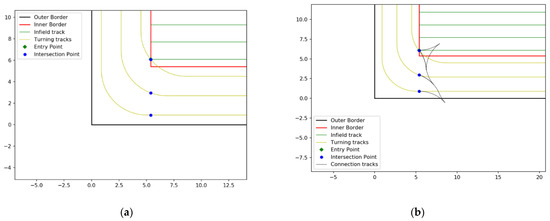 - Jeon, C.W.; Kim, H.J.; Yun, C.; Gang, M.S.; Han, X. An entry-exit path planner for an autonomous tractor in a paddy field. Comput. Electron. Agric. 2021, 191, 106548. [Google Scholar] [CrossRef]