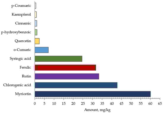 Figure 1. Phenolic acid profile of corn silk extract quantified using HPLC presented as mg of phenolic compound per each 100 g of corn silk on a dry matter basis.