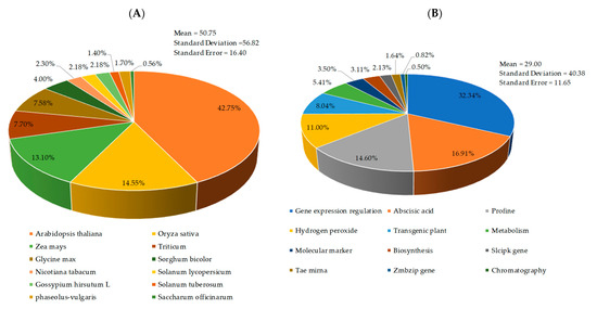 Mechanisms of action identified (A) and the most studied crops (B) with regard to advances in breeding for drought stress.