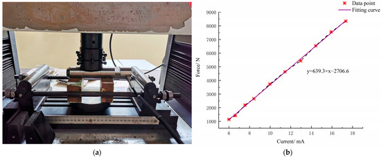 Calibration test of force sensor. (a) Test site; (b) Test result.