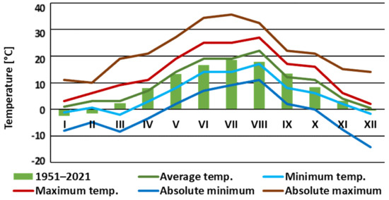 - Climate. 2022. Available online: https://meteomodel.pl/dane/srednie-miesieczne/?imgwid=352200375&par=%28tx%2Btn%29%2F2&max_empty=2 (accessed on 1 June 2023).