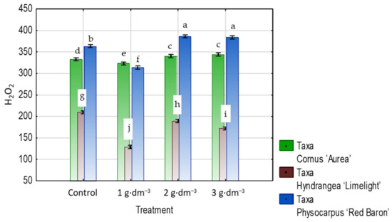 3.4. Starch-Based Superabsorbent Added to Medium Differentially Determines the Level of Hydrogen Peroxide in Leaves