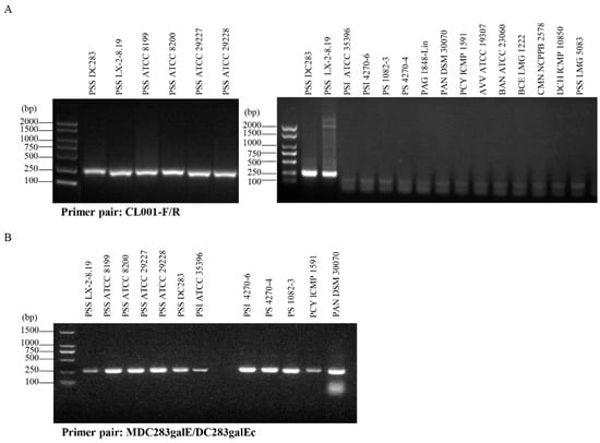 | AB Inter F1/R1 | AB Inter F2/R2 | GalE F1/R1 | GalE F2/R2 | MDC283galE /DC283galEc | DC283galE /DC283galEc | p-g-F/R | Pss F1/R | Pss F2/R | EGaseUP/NP | cpsAB2313F /cpsR | CL001-F/R | |
