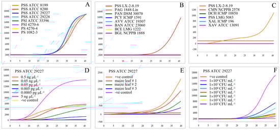 APA StyleCai, L., Tian, Q., Meng, Q., Bao, X., Xu, P., Liu, J., Zhao, W., & Wang, H. (2023). Recombinase Polymerase Amplification Assay for Rapid Field Diagnosis of Stewart’s Wilt of Corn Pathogen Pantoea stewartii subsp. stewartii. Agriculture, 13(10), 1982. https://doi.org/10.3390/agriculture13101982