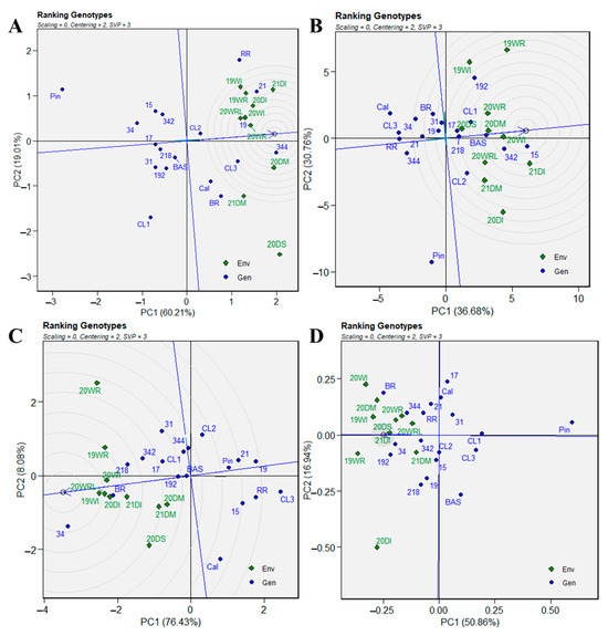 - Yan, W.; Tinker, N.A. Biplot analysis of multi-environment trial data: Principles and applications. Can. J. Plant Sci. 2006, 86, 623–645. [Google Scholar] [CrossRef]