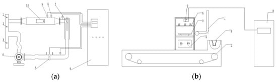 Hot-air and microwave drying equipment (a) Type BDGJ-B hot-air drying equipment (b) Type KLT-ZH microwave drying equipment (a) 1. Waste discharge valve, 2. Scavenging air valve, 3. Inlet valve, 4. Fan, 5. Flowmeter, 6. Control box, 7. Heater, 8. Temperature sensor, 9. Humidity sensor, 10. Drying oven. (b) 1. Feed inlet, 2. Transmission device, 3. Microwave heating chamber, 4. Fan, 5. Microwave vacuum drying chamber tray, 6. Magnetron, 7. Pressure gauge, 8. Console.