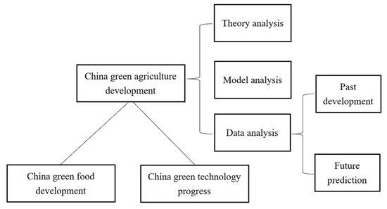 Existing researches about green agricultural production in China have widely explored various aspects in green agriculture such as green food and green technology progress [45,46], with a focus on the past development. This paper focuses on the green agricultural production level, in line with numerous studies [17,43,47,48]. Some of them only present theory and models about agricultural green production or are from a single perspective such as the farmer’s [17,47,48], lacking data analysis from a comprehensive perspective. Li et al. (2020) [47] collect first-hand data of 645 grain growers and use a structural equation model to explore the impacts of farmers’ perceptions on agriculture green production willingness. And game models between the government and farmers, and farmers and agricultural enterprises, are established to attempt to obtain the best stable strategy for better green technology diffusion [48], with Shen et al. (2020) [17] addressing the significance, challenges, framework, pathways and potential solutions for realizing agricultural green development in China.